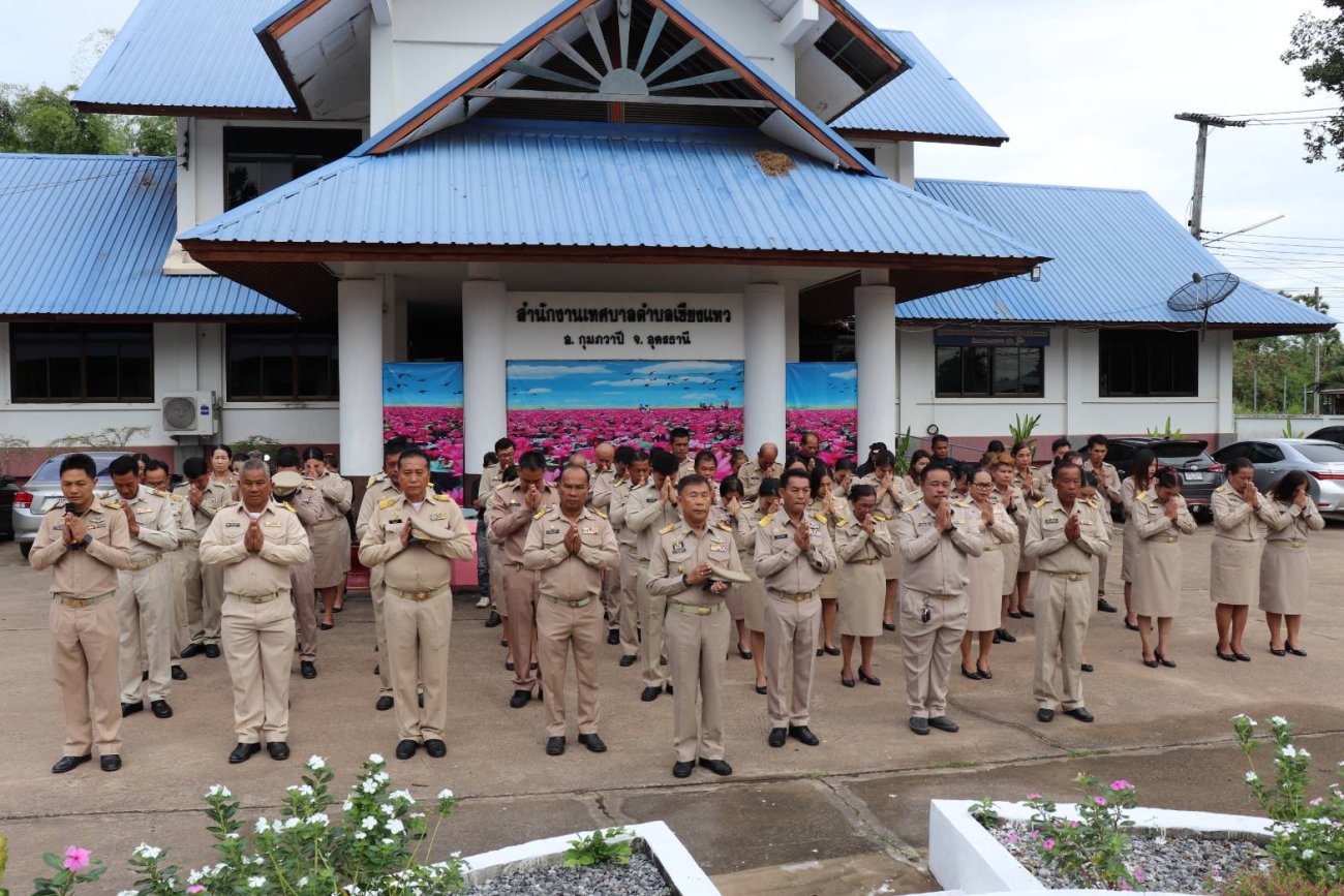 วันที่ 3 พฤศจิกายน 2568 เวลา 8:00 น. นำโดยนายวีระวัฒน์ วงษ์ศรีรักษา นายกเทศมนตรีตำบลเชียงแหว คณะผู้บริหาร นายจำลอง พลวาปี ประธานสภาฯ สมาชิกสภาฯ หัวหน้าส่วนราชการนำโดย ว่าที่ร้อยตรีวชิรพันธ์ ดีสวน ปลัดเทศบาลตำบลเชียงแหว พร้อมด้วยข้าราชการ เจ้าหน้าที่ พนักงานเทศบาลตำบลเชียงแหว ร่วมกิจกรรมเคารพธงชาติ สวดมนต์ไหว้พระ ลงนามถวายความอาลัยและถวายสักการะหน้าพระฉายาลักษณ์ สมเด็จพระนางเจ้าสิริกิติ์ พระบรมราชชนนีพันปีหลวง เพื่อแสดงความอาลัย สำนึกในพระมหากรุณาธิคุณอันหาที่สุดมิได้ ณ หน้าอาคารเทศบาลตำบลเชียงแหว